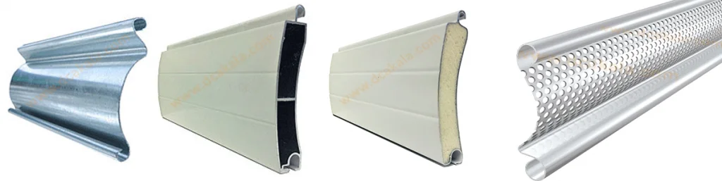 - تیغه فوم دار با جنس گالوانیزه: این تیغه از جنس فولاد منیزیوم است که داخل آن با خمیر پلی اورتان پر می شود و از تیغه های آلومینیومی با همین مکانیزم سنگین تر بوده و برای کرکره برقی پارکینگ منازل و کرکره پنجره ای در نمای ساختمان کاربرد دارد.
